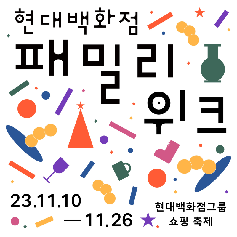 10일 현대백화점그룹에 따르면 오는 26일까지 17일간 초대형 계열사 연합 쇼핑 대전 '현대백화점 패밀리 위크'를 진행한다고 10일 밝혔다. 행사에는 백화점·아울렛·홈쇼핑·면세점·그린푸드·한섬·리바트·지누스·바이오랜드·드림투어 등 10여 개 계열사가 참여한다.