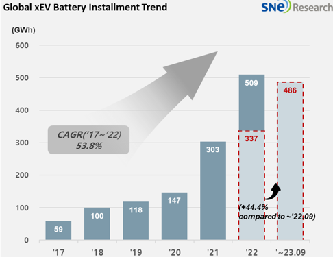 SNE리서치는 "최근 전기차 판매 성장률이 둔화하는 추세와 함께 성능보다는 가격 경쟁력이 화두가 되었다"며 "이에 따라 다수의 업체들이 삼원계 배터리 대비 가격 경쟁력을 갖춘 LFP 배터리를 채택하고 있다"고 분석했다.