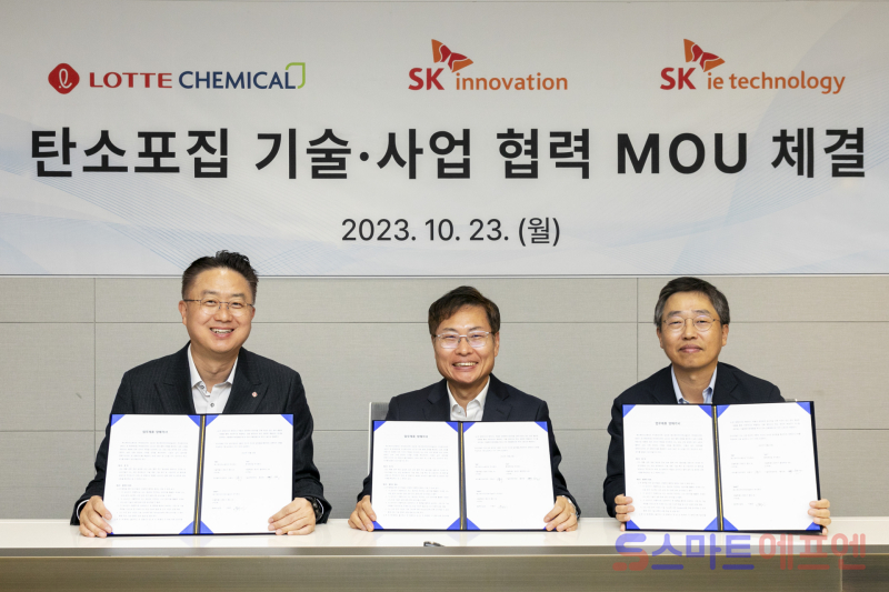 이날 협약식에는 롯데케미칼 황민재 종합기술원장, SK이노베이션 강동수 포트폴리오 부문장, SK아이이테크놀로지 이병인 BM혁신실장 등이 참석했다.