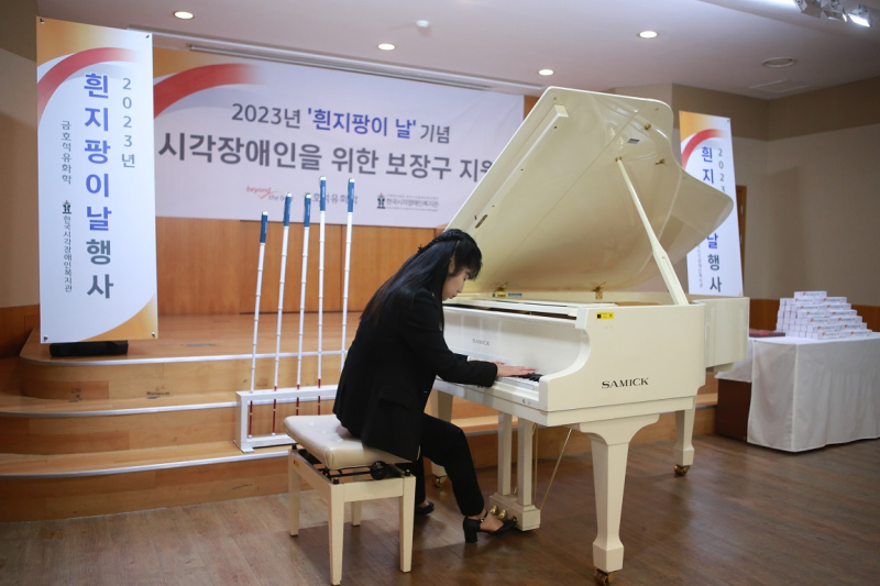 흰지팡이의 날(매년 10월 15일)을 기념하는 이번 행사에는 백종훈 대표이사를 포함한 금호석유화학 임직원과 백은희 이사장, 백남식 관장 등 한국시각장애인복지관 관계자가 참석했다. 금호석유화학의 지원에 대해 시각장애인 대표 백창진 씨가 감사의 말을 전했으며, 이후 피아니스트 유예은 씨를 초청해 연주를 감상하며 시각장애인 지원이 가지는 의미를 되새기는 시간을 가졌다. 유 씨는 선천적 시각장애를 극복하고 피아니스트로 성장한 인물로 과거 많은 매체에서 소개되었으며 지난 2015년에는 그의 일대기를 담은 영화가 개봉되기도 했다.