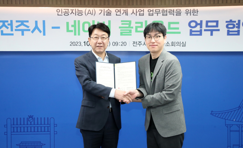 [스마트에프엔=한민식 기자] 전북 전주시가 13일 3층 회의실에서 네이버 클라우드 플랫폼을 활용해 AI 기술을 이용한 사업 발굴과 자문, 보건·복지·교육 등 전반적 협력을 강화하기 위한 업무협약을 체결했다.