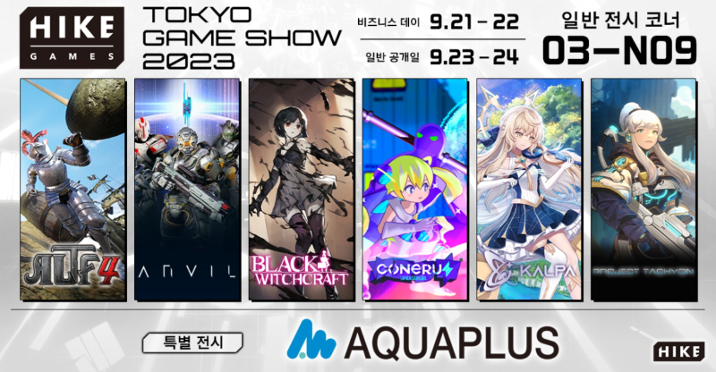 하이크는 퍼블리싱을 맡고 있는 ▲앤빌 ▲칼파 ▲ALT F4 ▲블랙 위치크래프트 ▲프로젝트 타키온으로 라인업을 구성, B2C 부스를 자체적으로 꾸려 각 게임의 글로벌 인지도를 확대한다.