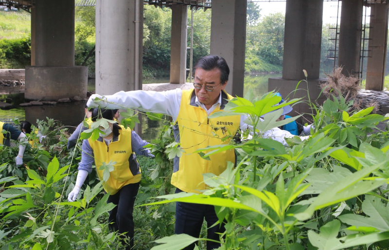 이날 5명씩 6개 조를 편성해 활동에 나선 금호석유화학 임직원들은 연일 계속되는 무더운 날씨에 장마철 집중호우를 지나며 급격히 번식한 단풍잎돼지풀, 환삼덩굴 등 생태교란식물을 제거하는 정화활동을 수행하였으며, 그 외에도 생태교란식물과 공기정화식물에 대한 강의를 듣고 대표적인 공기정화식물인 틸란드시아 이오난사를 활용한 테라리움(화분)을 만드는 등 다양한 활동에 참가했다.