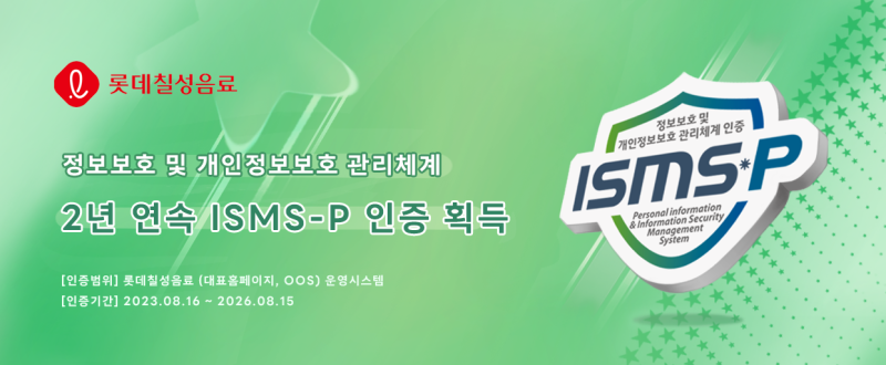 롯데칠성음료는 증대되는 개인정보의 중요성을 반영하여 ISMS-P 인증을 지난해 음료·주류 업계 최초로 자율 취득했다. 올해는 고객정보 보호 강화를 위해 대표 홈페이지뿐만 아니라 온라인 주문 배송정보 처리시스템인 OOS(Online Operating System)까지 인증범위를 확대했다.