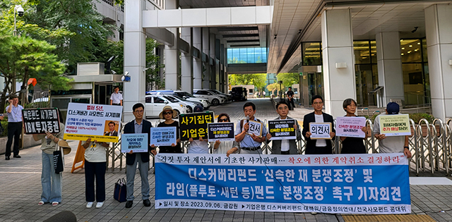시민단체는 "디스커버리펀드의 경우 지난 2021년 5월 24일 분쟁조정 당시 드러나지 않았던 새로운 불법행위를 반영해 재 분쟁조정을 실시하고, 피해자들에게 원금 100%와 5년의 경과 기간 이자를 포함한 배상 결정을 내리는 것이 맞다"고 강조했다.