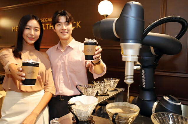 신세계백화점 강남점 7층 '멤버스바 더블랙'에 설치된 로봇 바리스타는 동시에 30잔을 내릴 수 있어 효율적이고 균일한 드립 속도로 인해 커피맛이 일정하다는 장점을 지니고 있다.