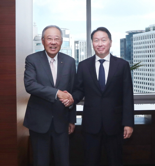 최태원 회장·류진 회장, 20여분간 티타임 가져…협력 방안 모색