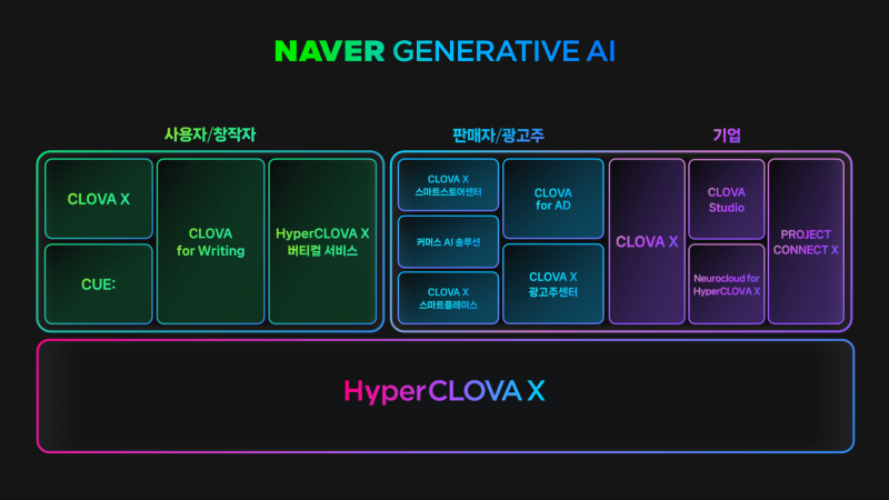 성 총괄은 "클로바X는 일상에서 질문하는 방식의 변화를, 프로젝트 커넥트X는 업무 생산성의 향상을, 클로바 스튜디오는 비즈니스의 경쟁력을 강화할 것"이라며 "데이터를 지능으로 바꿀 수 있는 전환의 시점에서, 우리의 생산성을 좌우할 수 있는 이 기술을 우리의 맥락과 문화, 환경에 최적화된 형태로 가꿔야 한다는 사명감으로 하이퍼클로바X를 만들고 있으며, 더 큰 가능성을 만들 수 있는 AI 생태계를 구축하고 AI가 모두의 경쟁력이 되도록 하겠다"고 말했다.