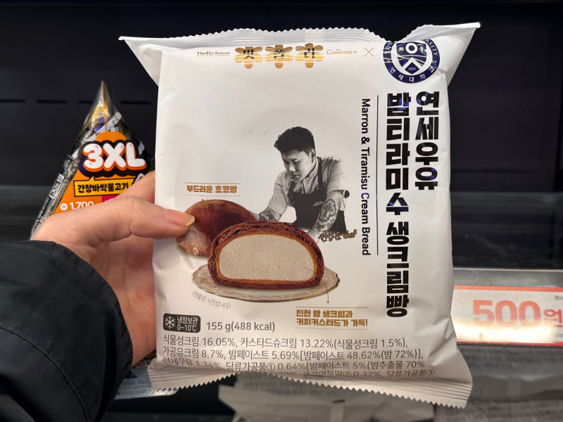 연세우유 밤 티라미수 생크림빵은 3400원에 판매되고 있다. 제품을 개봉하자마자 티라미수 특유의 커피향이 코를 자극했다. 명성에 걸맞게 빵 안에는 크림이 가득 차 있었다.