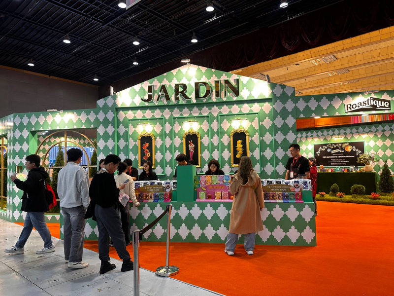 올해 부스는 동화 ‘이상한 나라의 앨리스’를 모티브로 삼아 ‘쟈뎅의 티 파티콘셉트로 운영한다. 커피&티 한 잔으로 경험하는 상상 속 나만의 정원을 ‘이상한 나라의 앨리스’를 경험하는듯한 초현실적인 환상의 정원으로 완성했다. 쟈뎅의 패밀리 브랜드인 ‘로스티크’도 정식으로 선보였다.