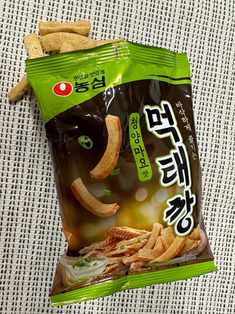 먹태깡의 패키지는 새우깡과 매우 유사한 모습을 띠고 있었으며 봉지를 뜯자 마자 청양마요의 향이 강하게 올라왔다.