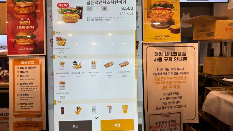 골든맥앤치즈치킨버거는 슈퍼두퍼나 쉐이크쉑 등의 버거 안에 들어 있는 치즈와 비슷한 맛이 났다. 맘스터치는 일반 프렌차이즈 버거에 비해 두툼한 패티가 특징인데 여기에 진한 맥앤치즈가 들어가니 맛에서 수제버거와 엇비슷함이 느껴졌다.