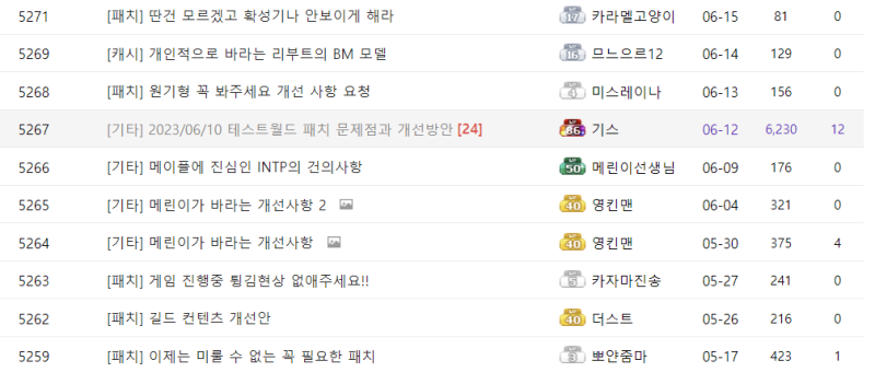 한 유저는 "이번 패치의 목적은 본섭을 기준으로 잡겠다는 운영진의 의지 표명으로 보인다"며 "한 번에 여러개를 건드리기는 힘들었는지 관련 조정은 미미했고, 일부 유저들에게는 이득이 되는 패치를 진행한 것은 유감"이라고 의사를 표했다. 그러면서 "여전히 신규 유저들이 유입되기에는 불합리함이 남아있으니 추가 보완 패치가 필요하다"고 강조했다.