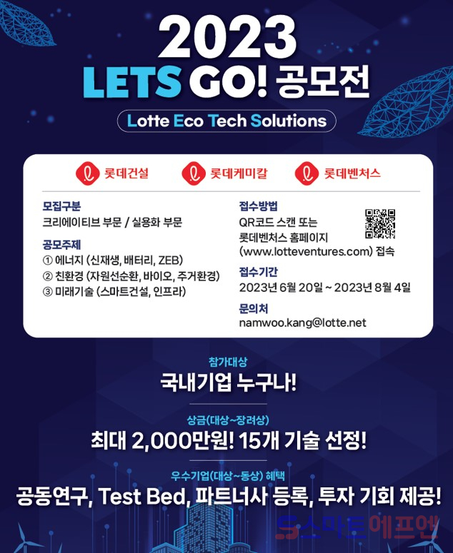 롯데건설은 지난 2021년부터 진행한 기술혁신 공모전을 통해 차별화된 경쟁력을 가진 우수기술들을 발굴해 왔으며, 올해는 롯데케미칼, 롯데벤처스와 함께 산업 범위를 확장해 미래를 선도할 기술을 모집한다.