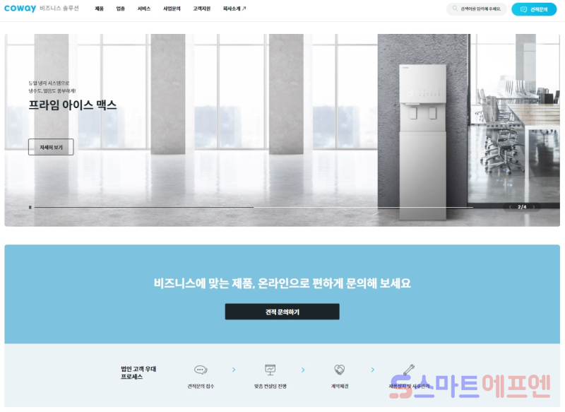 코웨이는 기업 고객을 위한 전용 온라인 채널 '코웨이 비즈니스 솔루션'을 새로 선보이며 신규 및 기존 기업 고객을 위한 편의성을 강화하고 있다.