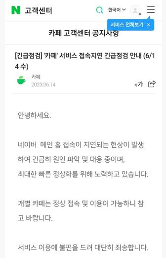 네이버 메인 홈을 통한 카페 접속은 정상복구됐으나 이용자 상당수는 불편을 겪었다.