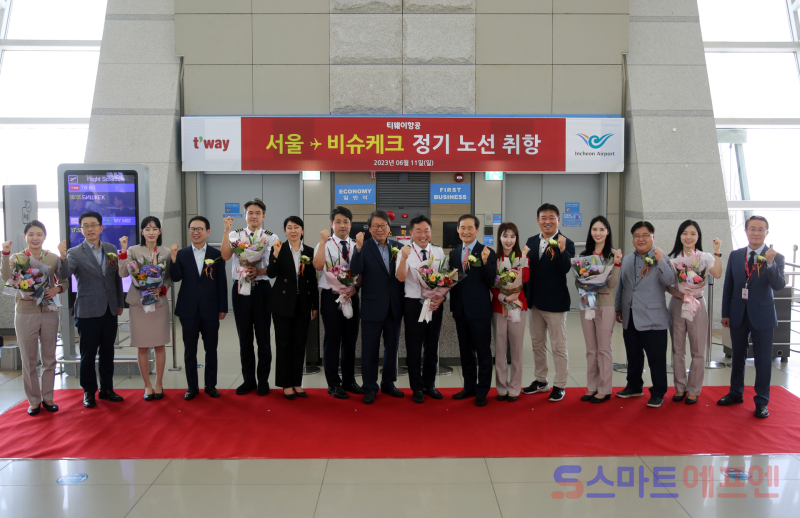 티웨이항공은 인천-비슈케크 노선 취항을 기념해 인천국제공항에서 정홍근 대표와 임직원 및 관계자들이 참석한 가운데 취항식 행사를 진행했다.