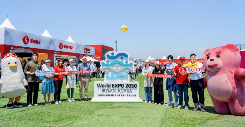 롯데는 중계방송 시청자들에게도 부산세계박람회를 알리기 위해 이벤트홀인 롯데플레저홀 갤러리 스탠드에 ‘2030 부산세계박람회 유치를 롯데가 응원합니다’라는 메시지를 새기고 티박스에 부산세계박람회 엠블럼 조형물을 설치했다.