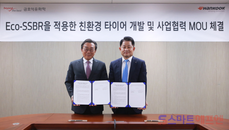 한국타이어는 금호석유화학의 RSM(Recycled Styrene Monomer, 재활용 스티렌)을 적용해 생산되는 Eco-SSBR을 활용한 친환경 타이어 개발을 위해 물성, 성능, 타이어 평가 등을 수행할 예정이다.
