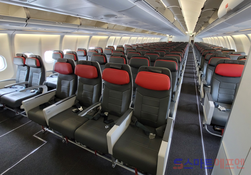 또한 모든 좌석에 기내 엔터테인먼트 시스템을 설치하지 않고 트렌드에 맞게 충전포트와 거치대를 제공해 무게를 줄였다.