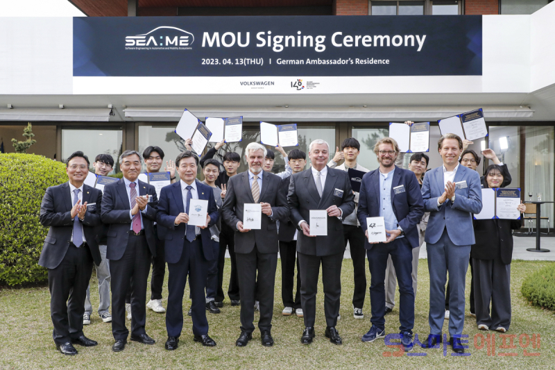 이번 업무협약은 한독 수교 140주년을 기념해 독일대사관저에서 열린 기념식에서 진행됐다. 행사에는 폭스바겐그룹코리아 틸 셰어 대표이사 사장과 미하엘 라이펜슈툴 주한독일대사를 비롯해 아주대와 인하대를 포함한 첨단분야 혁신융합대학사업 미래자동차 컨소시엄에 속한 각 대학교의 단장, 국민대학교 임홍재 총장, 42 볼프스부르크 막스 셍에스 학장 겸 CEO, SEA:ME 파일럿 프로그램 1기 학생 등 50여명이 참석했다.