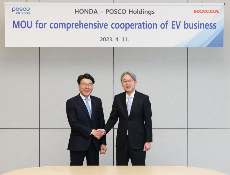 아울러 양사는 미국 인플레이션감축법(IRA), 유럽 핵심원자재법(CRMA) 등 글로벌 전기차 공급망 문제가 현안으로 부상한 가운데 포스코그룹의 리튬·니켈, 양·음극재, 리사이클링 등 이차전지소재 사업 역량과 혼다의 중장기 글로벌 전기차 사업 확장 전략을 토대로 공동 대응체계를 마련하는 방안도 검토하기로 했다.
