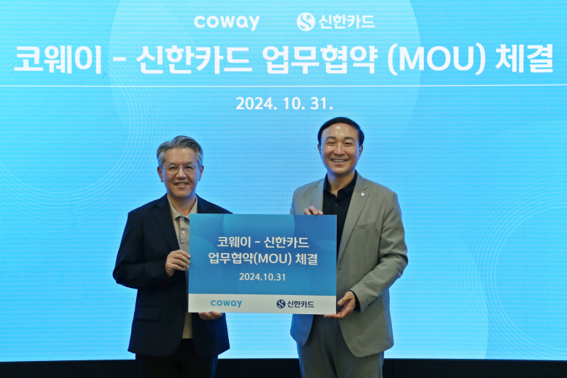 이번 협약식은 서장원 코웨이 대표이사와 문동권 신한카드 사장 등 관계자들이 참석한 가운데 서울 중구에 위치한 신한카드 본사에서 진행됐다.