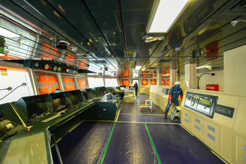 컴컴한 조타실을 벗어나 네비데크(NaviDech)에 들어서자 믿기 힘든 광경이 펼쳐졌다. 현재 건조 중인 선박과 바다가 어우러져 장관을 이루고 있었다. 여느 유명 휴양지와 맞먹는 조망을 자랑했다.