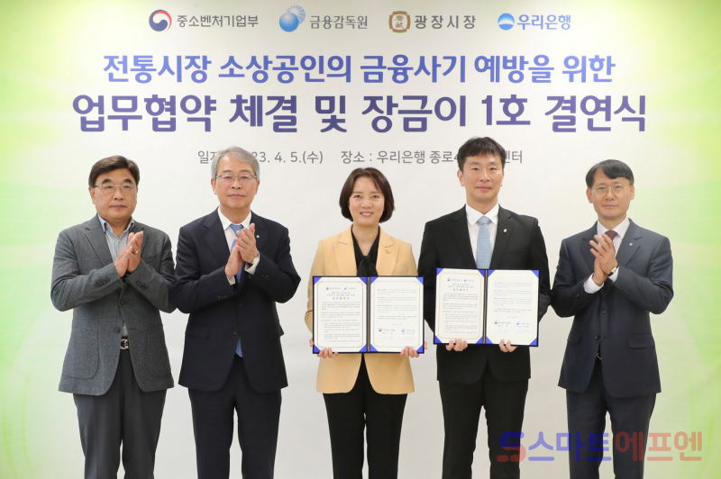 광장시장 인근에 소재한 우리은행 종로4가금융센터에서 진행된 이번 행사에는 이영 중소벤처기업부 장관, 이복현 금융감독원장, 임종룡 우리금융그룹 회장, 김영재 광장시장 상인총연합회 회장 등 주요 관계자들이 참석했다.