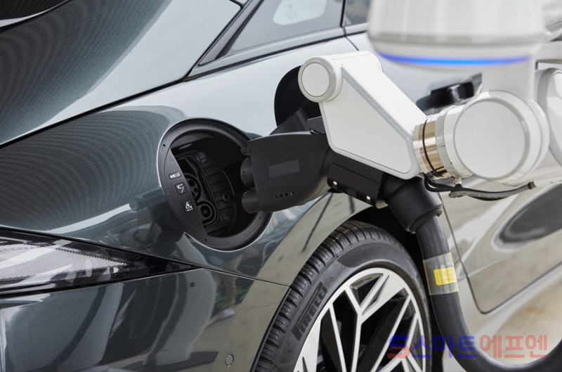 주차된 전기차와 통신해 주유구 덮개 자동으로 연 뒤 스스로 충전기 꽂는 로봇 영상 공개