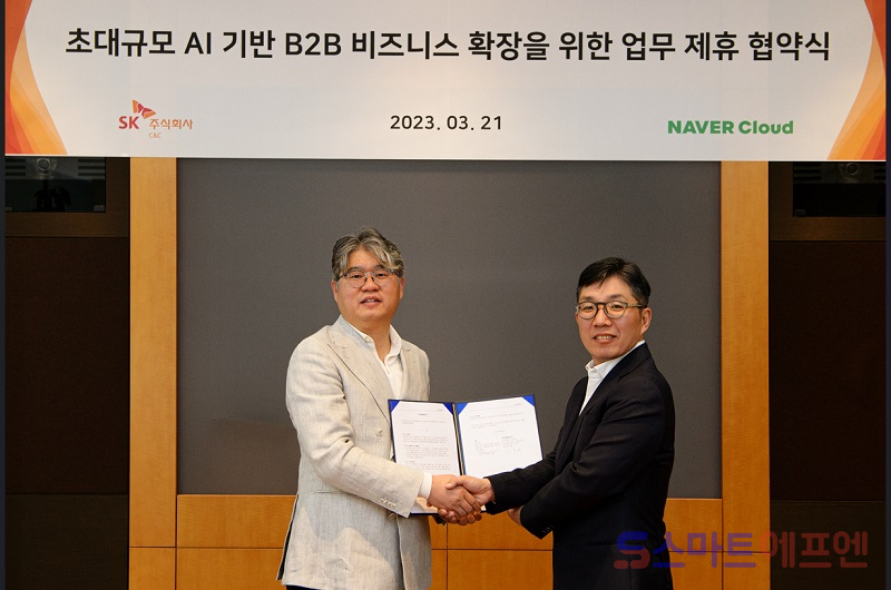 SK㈜ C&C는 네이버클라우드와 ‘초대규모(Hyper-Scale) AI 기반 B2B 사업 확장 협력 MOU’를 체결했다고 21일 밝혔다.