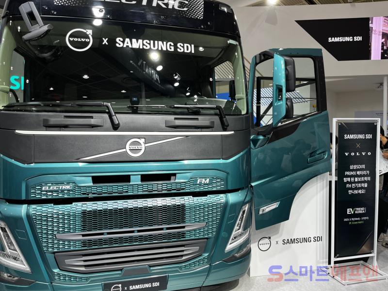 삼성SDI의 배터리가 탑재된 볼보의 FM일렉트릭은 볼보트럭이 국내에 처음으로 선보이는 대형 전기트럭이다. 부스에서는 트럭내부에 설치된 실제 원형의 배터리 모듈과 구조를 눈으로 직접확인하면서 설명을 들을 수 있었다.