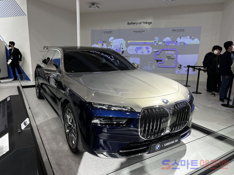 이 외에도 바로 옆에는 BMW의 고급세단 뉴i7이 전시되어 있었다. 부스에서 설명을 돕는 삼성SDI의 스태프는 "삼성SDI의 배터리가 고급세단부터 대형트럭에까지 다양하게 적용하는 배터리 기술을 가지고 있다"고 설명했다.