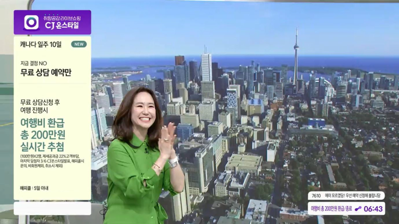 CJ온스타일 박성수 MD는 “강주은씨의 추억이 가득 담긴 여행 코스를 구성하기 위해 수십번의 협의를 거듭해 최적의 코스를 구성할 수 있었다”며 “짧은 시간만 보고 오기 아깝다는 의견에 따라 벤프 2연박, 몬트리올&퀘백 2연박 등 일정도 고려됐다”고 말했다. 이어 “진정성 있는 방송이 고객들에게 진심으로 와닿아 성과로 나타났다고 생각돼 더욱 의미가 깊다”고 덧붙였다.