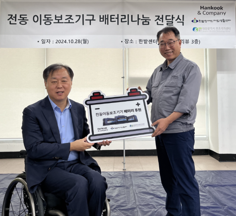 한국앤컴퍼니의 '전동이동보조기기 배터리 나눔'은 이동 약자인 장애인들의 전동 휠체어, 전동 스쿠터 등 이동보조기기에 장착되는 전용 배터리를 지원하는 사업이다. 한밭장애인자립생활센터와 2012년부터 13년째, 완주군장애인복지관과는 2014년부터 11년째 배터리 나눔 사업을 진행하고 있다.