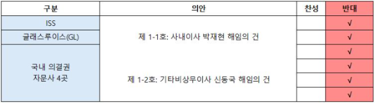 지난 6일에는 ISS와 글래스루이스(GL)도 이 안건에 ‘반대한다’는 의견을 담은 보고서를 해외 기관투자자들에게 전달했다.