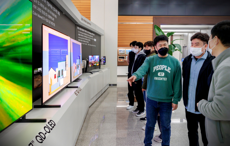 77형 TV, 49형 모니터 등 최신 QD-OLED 사업장 순회 전시