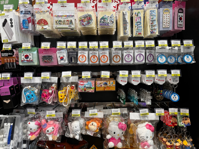 CU 명동역점에 기념품으로 판매되는 굿즈들. / 사진=홍선혜 기자