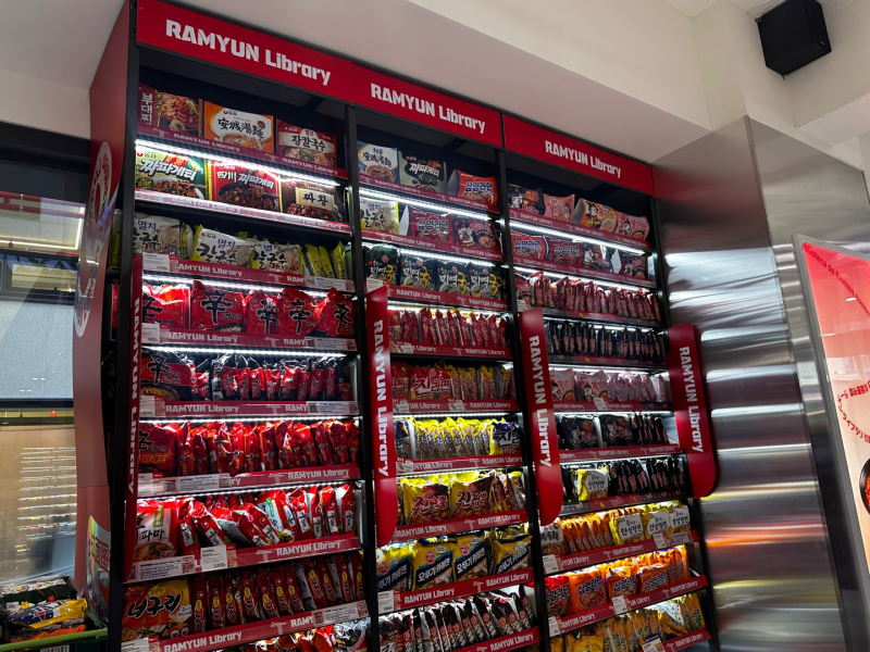 CU명동역점 벽 한면에 K-라면 특화 존을 설치했다. / 사진=홍선혜 기자