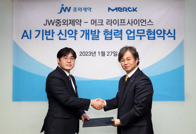 JW중외제약은 서울 서초동 본사에서 독일 머크 라이프사이언스(Merck Life Science, 머크)와 AI를 이용한 신약의 원료의약품 연구개발을 위한 업무협약(MOU)을 체결했다고 30일 밝혔다.