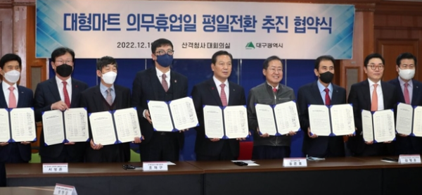 이에 따라 민주노총 서비스연맹 마트 노조는 대구시의 의무휴업일 평일 전환에 반기를 들고 대구시청 산격청사를 점거한 바 있다.
