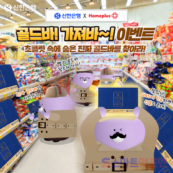 또한 골드바 초콜릿을 구매하고 오는 1월 15일까지 인증샷을 인스타그램과 페이스북에 ‘신한은행’, ‘골드바의주인공은나’ 필수 해시태그와 함께 업로드하면 추첨을 통해 신세계 상품권 3만원권(20명), 스타벅스 커피세트(40명)도 제공한다.