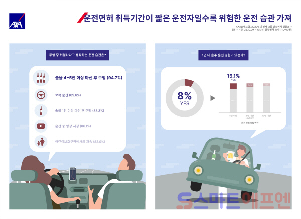 AXA손해보험(이하 악사손보)은 운전자들의 교통안전 의식과 운전 행태 등을 바탕으로 한 ‘2022년 운전자 교통 안전 의식’ 설문조사 결과를 8일 발표했다.