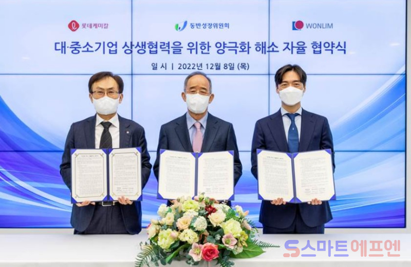 지난 2019년 롯데케미칼은 동반성장위원회와 대‧중소기업 간 임금격차 해소 및 동반성장을 위해 '혁신주도형 임금격차 해소 협약'을 체결한 바 있다. 3년 간의 협약 기간이 올해 만료됨에 따라 양 기관이 '양극화 해소 자율협약'을 다시 체결했다.