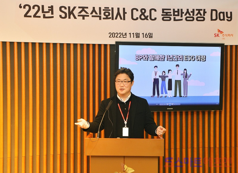 SK㈜ C&C로부터 ESG 컨설팅 서비스를 지원받은 ㈜이에이치코어, ㈜소프트퓨전 등 BP사는 ESG 실천 및 개선 효과 등을 참석자들에게 공유했다.