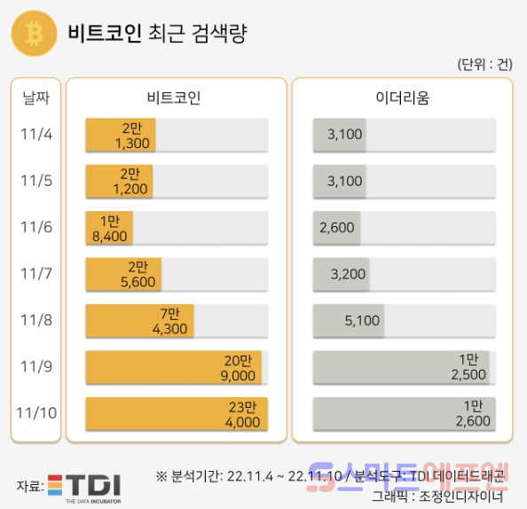 한편 FTX는 파산 신청을 했으며 가상화폐 시장 혼란은 지속될 전망이다. 코인니스와 크라토스가 공동 진행한 FTX 사태 관련 설문조사에 따르면 국내 투자자 4분의 1가량은 비트코인이 1만달러 밑으로 추가 하락할 수 있다고 전망했다.