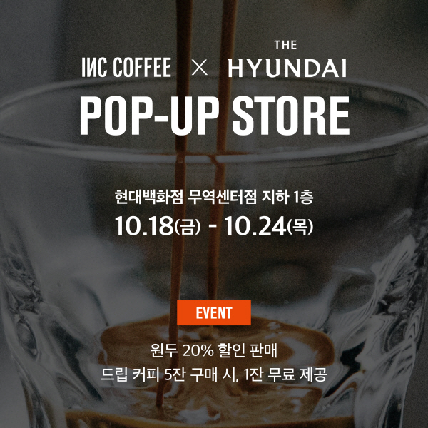 인크커피 관계자는 “이번 팝업스토어는 인크커피가 가진 차별성을 알릴 수 있는 기회로 인크커피의 드립 커피와 다양한 인기 품목을 경험할 수 있도록 더욱 풍성하게 준비했다”며 “이번 행사를 통해 많은 분들에게 인크커피만이 갖고 있는 특별한 가치를 경험할 수 있도록 하겠다”고 말했다.