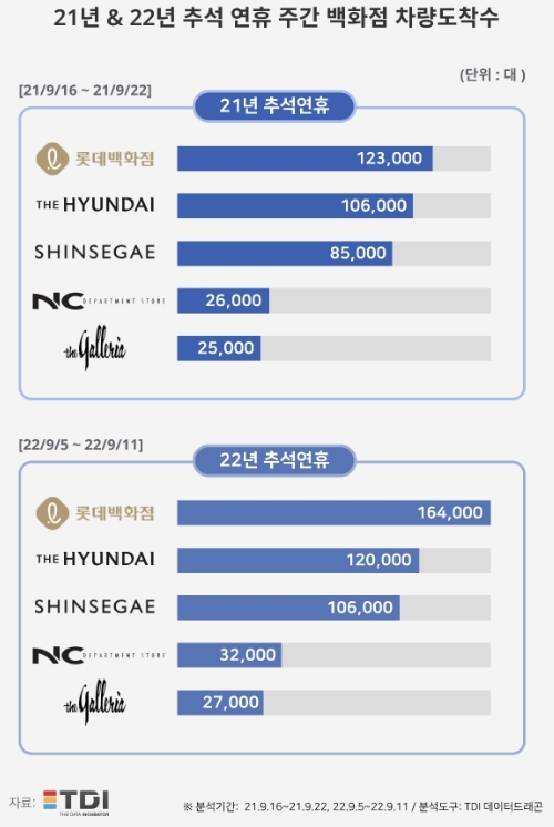 백화점 추석 연휴 주간 차량도착수 전년 동기 대비 평균 20%↑