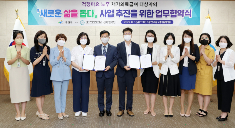 협약식에는 박병규 광산구청장과 광주여대 산학협력단장 박득 교수, 간호학과 학과장 채명정 교수 외 간호과 교수진이 참여했다.