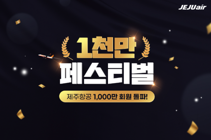제주항공은 회원 1000만명 돌파를 맞아 오는 31일까지 제주항공 회원을 대상으로 추첨을 통해 항공권과 리프레시포인트, 기프티콘을 증정하는 회원 혜택 이벤트를 진행한다.
